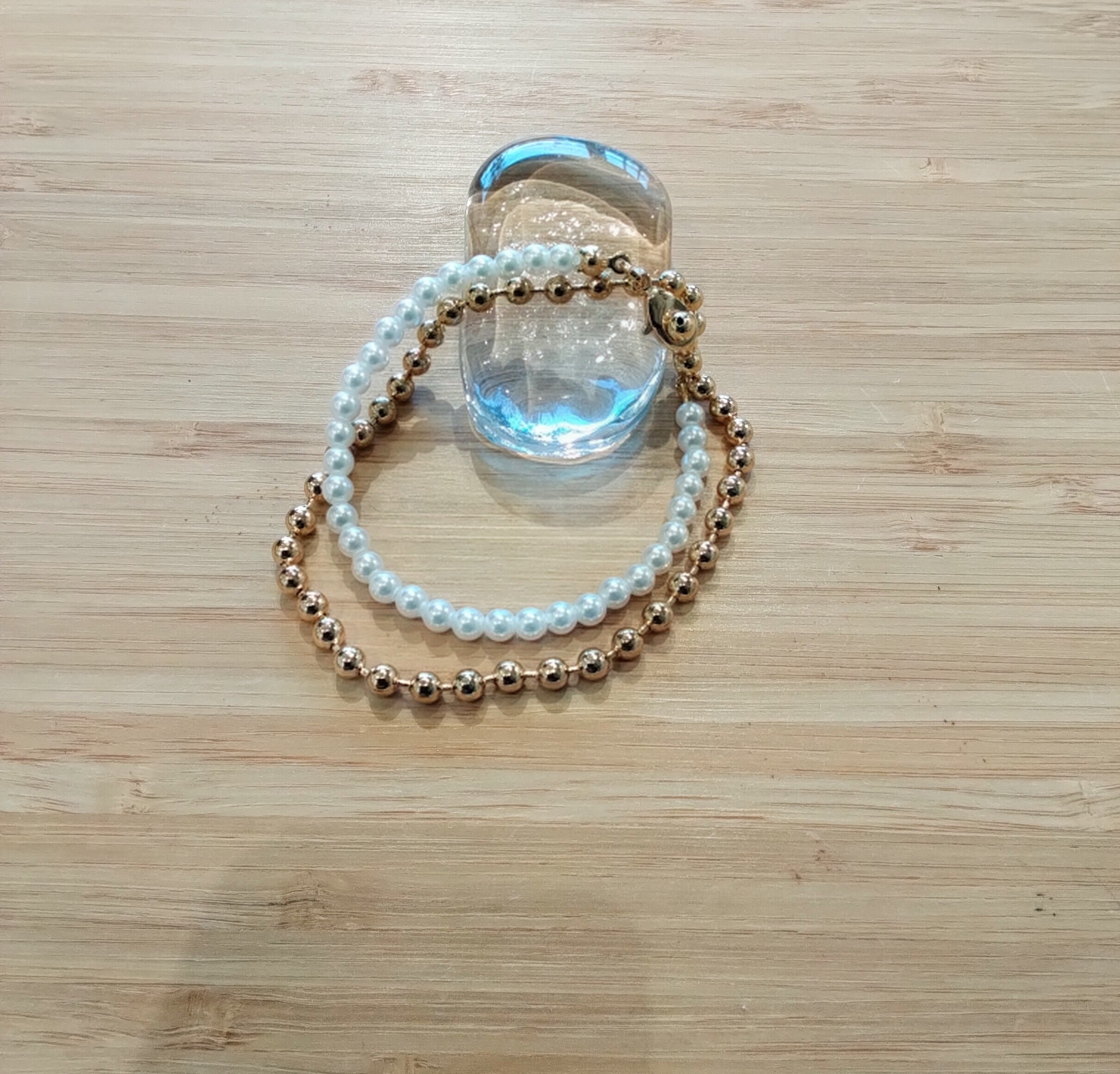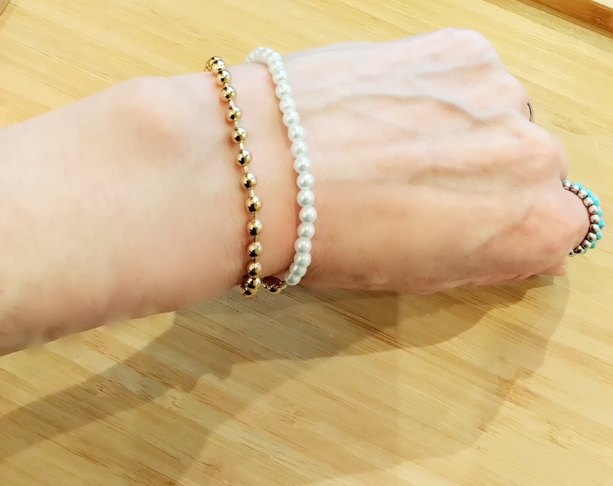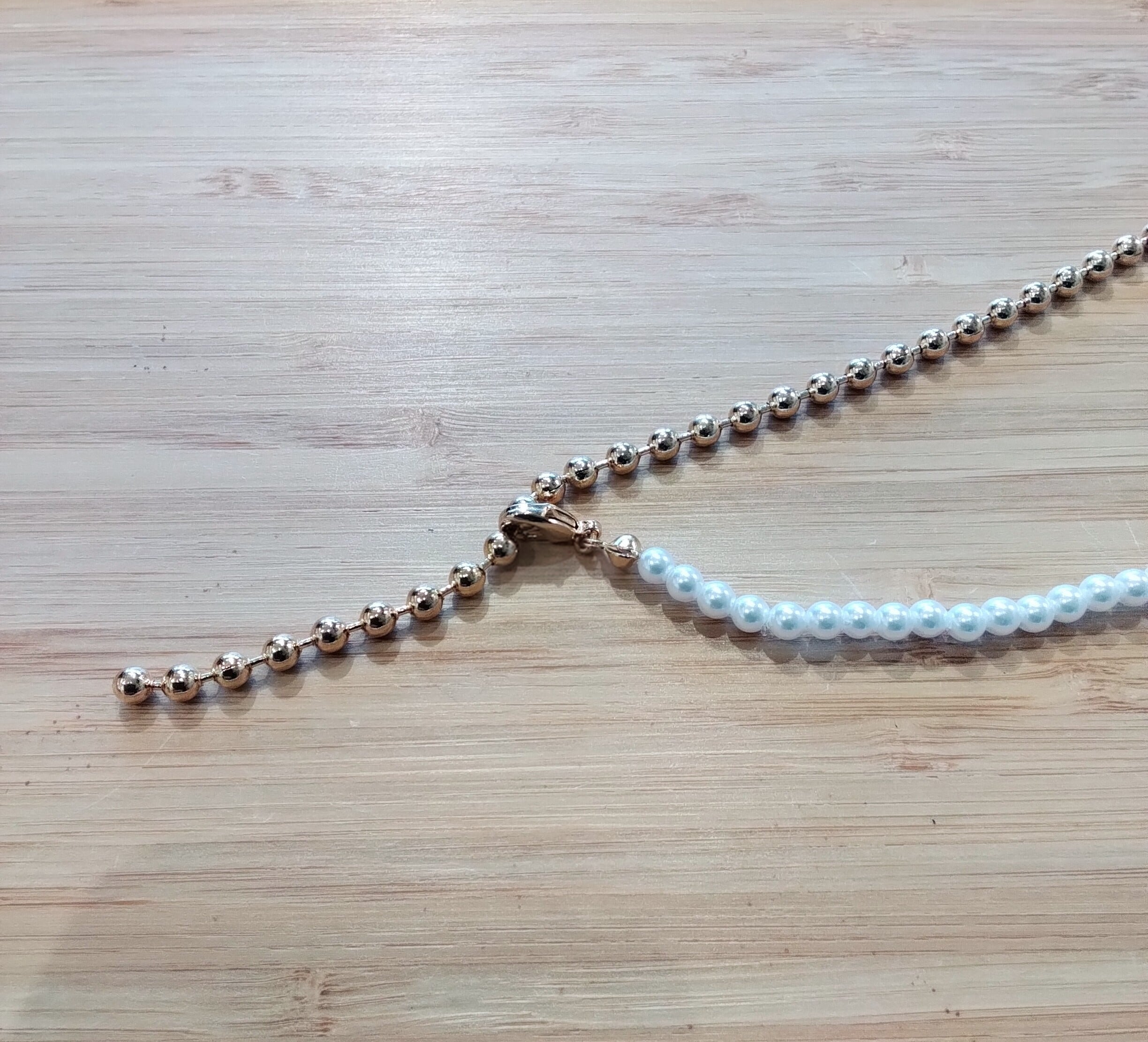 パール×ボールチェーンのブレスレット