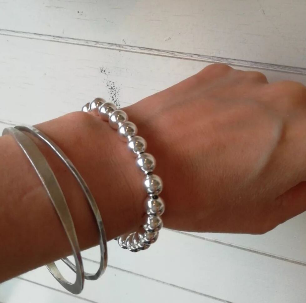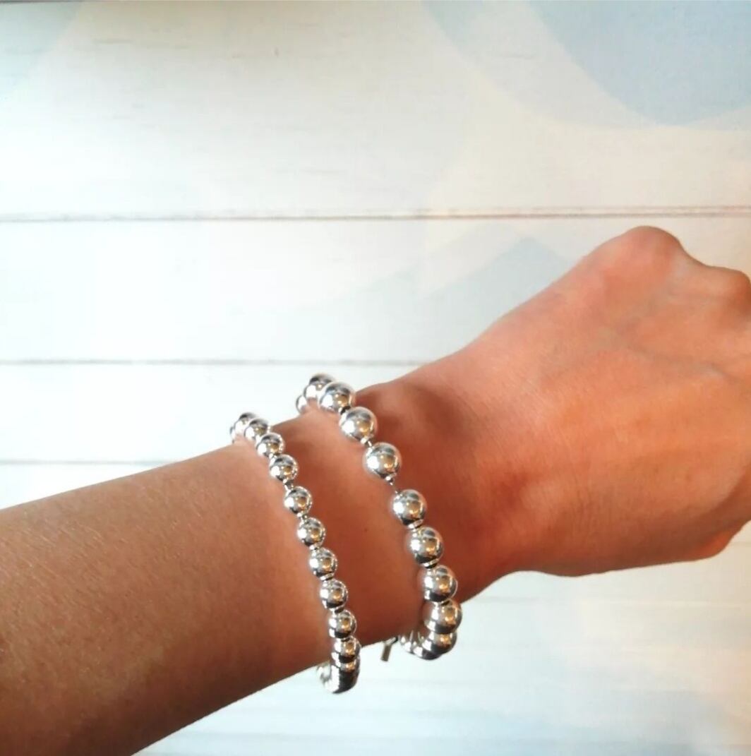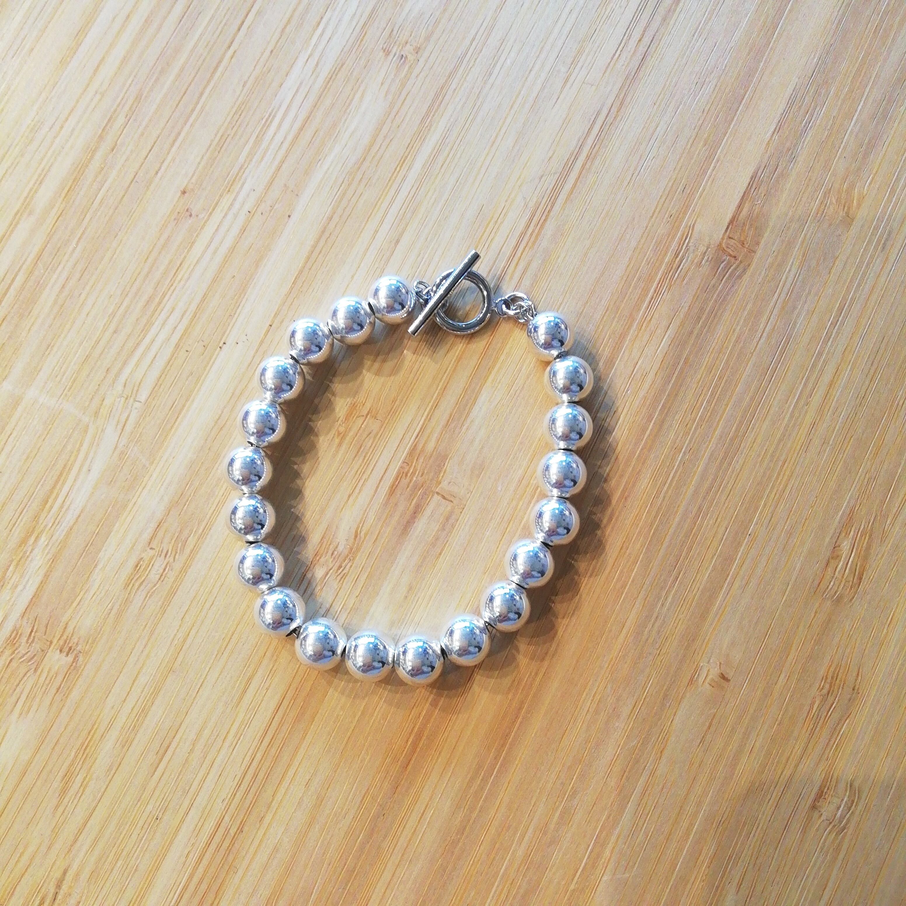 シンプルで上品なデザインのシルバーボールブレスレット。存在感があり、コーディネートのアクセントに最適です。